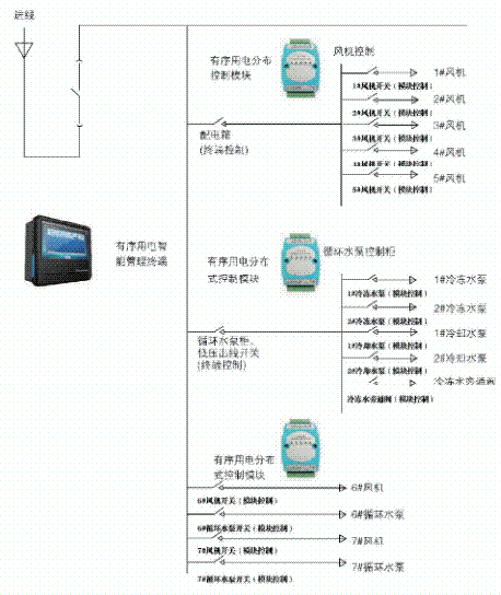 非工业用户有序用电管理系统是一种分布式快速响应机制,将有序用电智能管理终端与分布式控制模块相结合,使用户可参与有序用电预案制定,使用简单可靠的控制策略,通过对中央空调系统部分设备的智能化精细控制,在不影响设备安全运行的情况下,快速有效地调整中央空调总负荷水平。